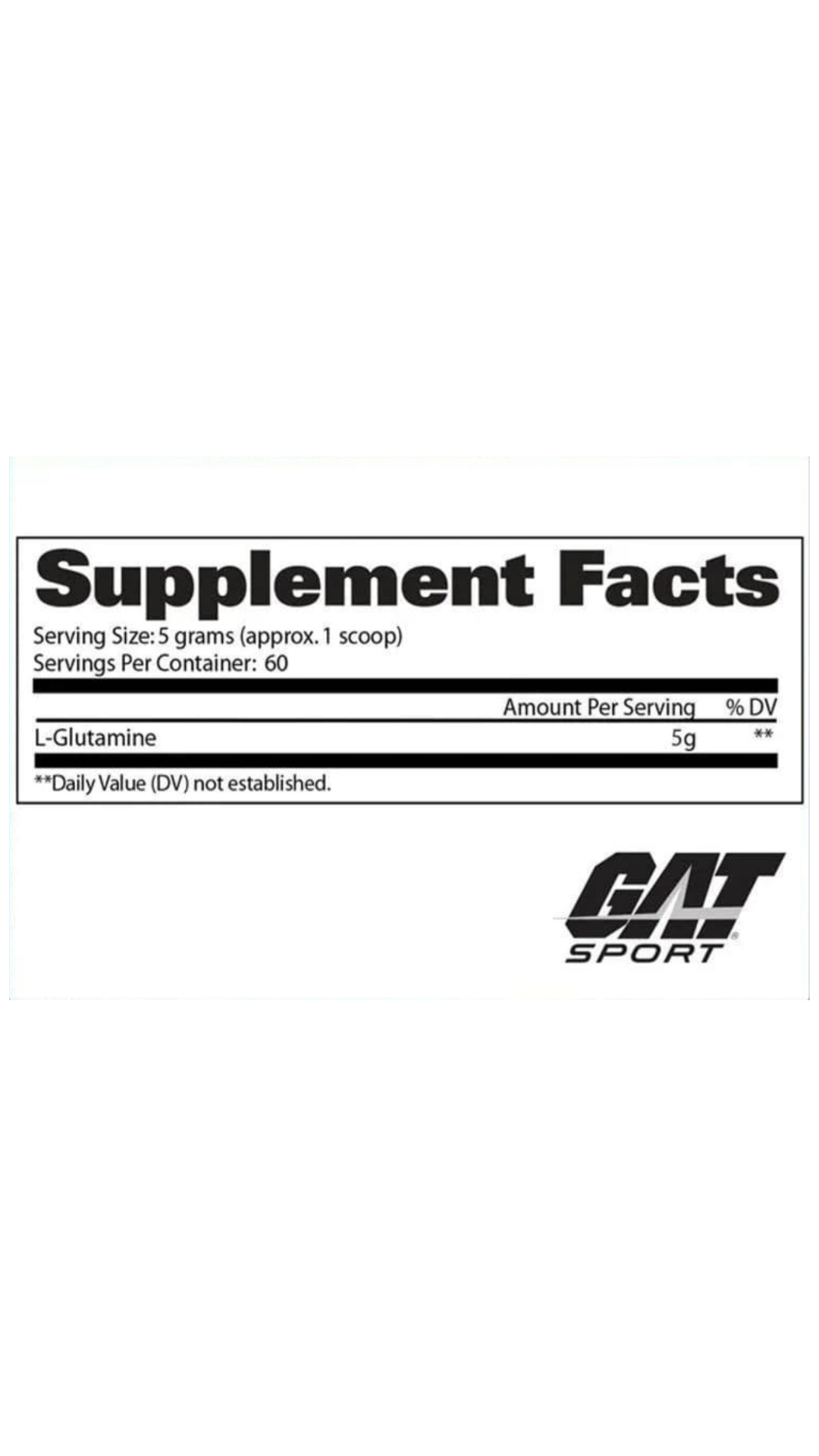 La L-Glutamina de GAT Sport es un aminoácido puro y lo suficientemente potente como para ser utilizado por algunos de los mejores atletas de físico y rendimiento del mundo. Cada ración aporta 5 g de L-Glutamina de alta calidad. Cada porción de este producto aporta 5000 mg (5 g) de L-Glutamina de calidad farmacéutica.
