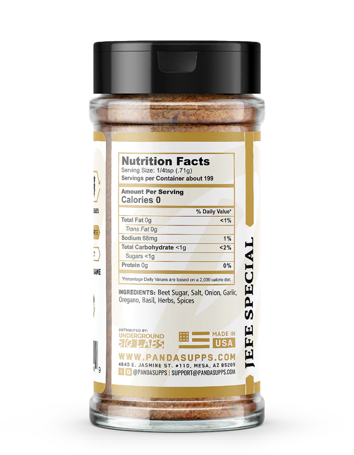 Únete a la Familia Panda y adopta un estilo de vida más saludable y sabroso con los Suplementos Panda y los Sazonadores Premium de Jeffrey Harris. Especialmente elaborados para deleitar tu paladar, estos sazonadores cuentan con una impresionante cantidad de cero calorías por porción de 710 mg, lo que garantiza un disfrute sin remordimientos con cada rociado. Además, independientemente de tu preferencia de sabor, cada porción contiene menos de 100 mg de sodio, lo que los convierte en una opción inteligente para quienes cuidan su consumo de sal.